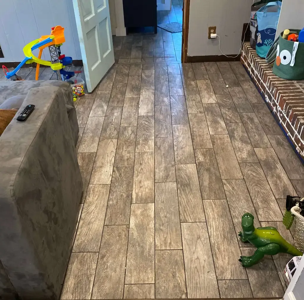 The homeowner, a young mother raising her two-year-old son, was in the midst of renovations when she tragically lost her wife. What had once been an exciting transformation suddenly became an overwhelming, unfinished project. With a newly built addition on the house, mismatched flooring between the living room and kitchen served as a daily reminder of what was incomplete. She needed more than just a flooring solution; she needed a way to bring harmony, comfort, and a sense of stability back into her daily life.